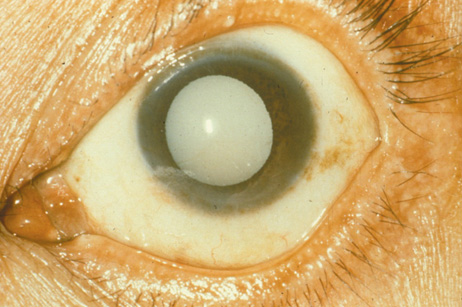 LENS EPITHELIAL DECOMPENSATION In some cases the entire anterior lens epithelium is observed to be edematous with resulting generalized haze (Fig. 20A). This is usually followed within a short period of time (a few months to 1 year) by the development of cortical cataracts and PSCs that mature quickly and cause severe, rapid loss of vision (Fig. 20B).