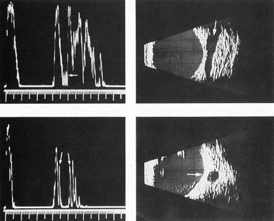 in 20% to 30% of patients.2 In addition to the common saccular (“berry”) aneurysm, the other morphologic type is fusiform, which most frequently but not exclusively involves the posterior vertebrobasilar system. Fusiform aneurysms are characterized by tortuous dilatation and elongation (dolichoectasia) of an artery and are usually associated with atherosclerosis, hence the synonymous term atherosclerotic aneurysm. The intracranial arteries have thin media and poorly developed or absent internal elastic lamina; they are particularly prone to develop small outpouchings at arterial branch junctions where developmental defects in the media exist. Histologic study of the saccular aneurysm often demonstrates a defect in the elastic and muscular coat, beginning at the point of origin (neck) from the parent artery. This finding has supported the concept of a developmental origin and created the term congenital aneurysm to designate saccular aneurysms, although these lesions are not present at birth. Factors such as hypertension, degenerative changes in the arterial wall, and heritable connective-tissue disorders as in the Ehlers-Danlos syndrome and neurofibromatosis-1, all play roles in the subsequent development of aneurysms. There is firm evidence of aneurysm disease in first- or second-degree relatives, and there is a distinct association with polycystic kidney disease and aortic coarctation.2 As noted, multiple saccular aneurysms of the carotid or vertebrobasilar system occur 20% to 30% of the time, frequently with identical or mirror sites found in the left-sided and right-sided circulations. Most aneurysms arise from the carotid system on the anterior communicating, middle cerebral, and internal carotid arteries, or they arise in the region of the origins of the posterior communicating arteries (Fig. 1A). Only some 5% of saccular aneurysms arise on the vertebrobasilar system (Fig. 1B). Usually, clinical symptoms are the result of rupture of an aneurysm, resulting in extravasation of blood under arterial pressure into the subarachnoid or intraventricular spaces or into the brain parenchyma, with intracerebral hematoma formation. Subarachnoid and intraventricular blood causes depression of consciousness; intracerebral hematoma and vascular spasm produce focal neurologic signs and even cerebral herniation with compression of the third nerve. The subsequent sudden increase in the intracranial pressure may result in sixth-nerve palsies, in subretinal, intraretinal, or preretinal hemorrhage, and in conjunctival and, rarely, orbital hemorrhage. Approximately 100 years ago, Terson recorded the occurrence of vitreous hemorrhage after spontaneous subarachnoid bleeding. Such ocular hemorrhage is believed to result from transmission of intracranial pressure through the subarachnoid communication between the optic nerve sheath and the intracranial cavity, with subsequent nerve sheath dilation and rupture of dural and bridging vessels (Fig. 2). Intraocular hemorrhage is possibly the result of retinal venous hypertension brought on by obstruction of both the central retinal vein and the retinochoroidal anastomoses. Kuhn et al3 have reviewed Terson's syndrome, including the role of pars plana vitrectomy; these authors noted the high incidence of preceding coma, and the efficacy of surgical intervention in visual recovery.