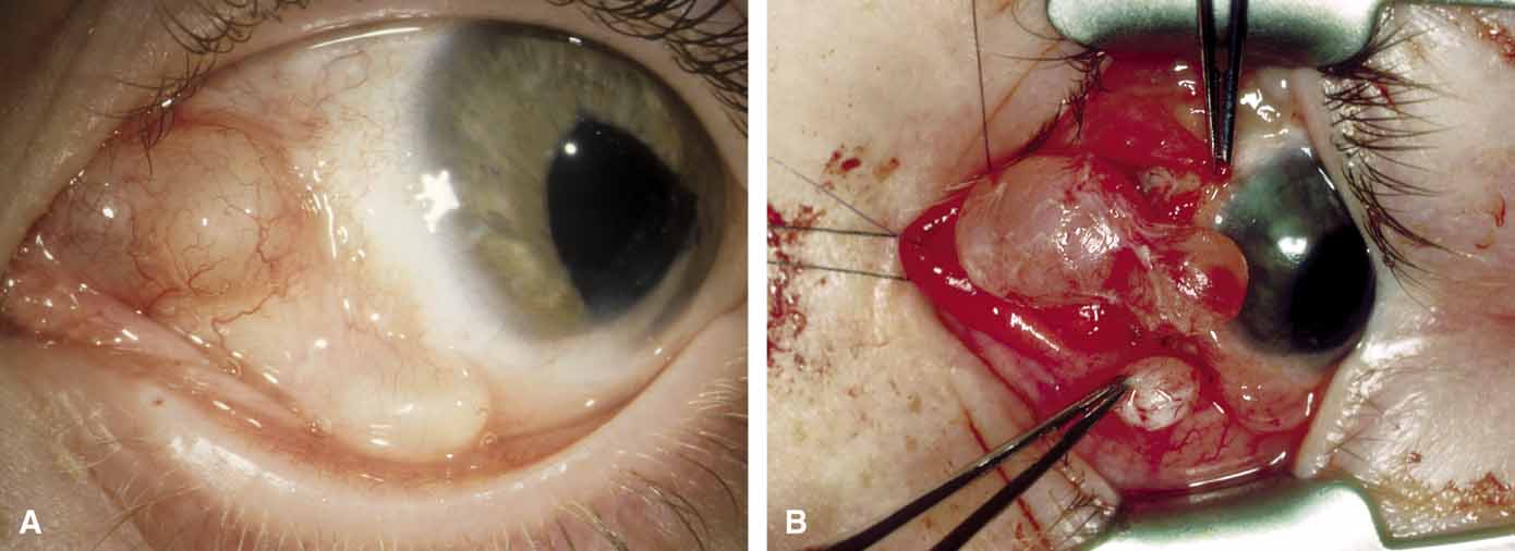 mucoceles or dacryoceles. Epithelial implantations secondary to trauma