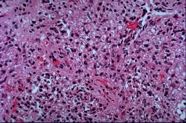 necrosis with hemorrhage,86 and glial giant cells.4