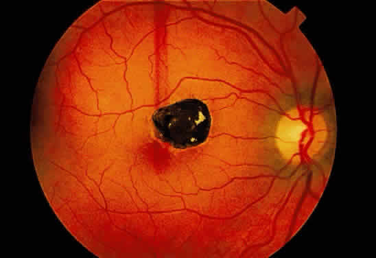 shape of the hemorrhage. Fresh hemorrhage on the retinal surface appears bright red, whereas fresh hemorrhage