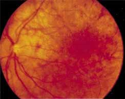 of the retinal and/or choroidal tissues by the disease process. The monistic