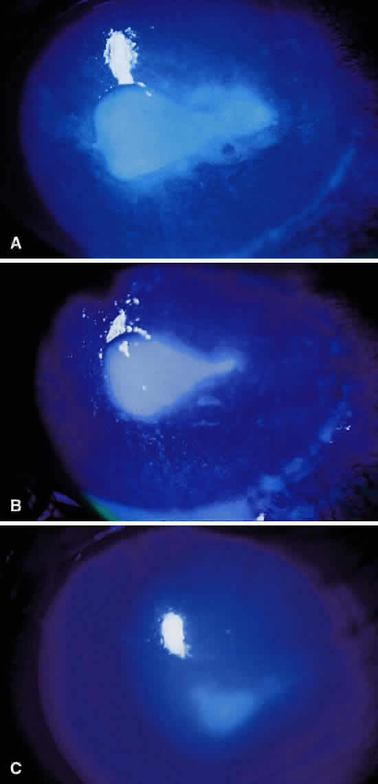 A corneal biopsy may be necessary to gain access to the “crystalline” infiltrates for identification and culture of organisms. This may be accomplished using a disposable 2-mm dermatologic biopsy punch. These infections may be extremely resistant to therapy, requiring an extended course of antibiotics.