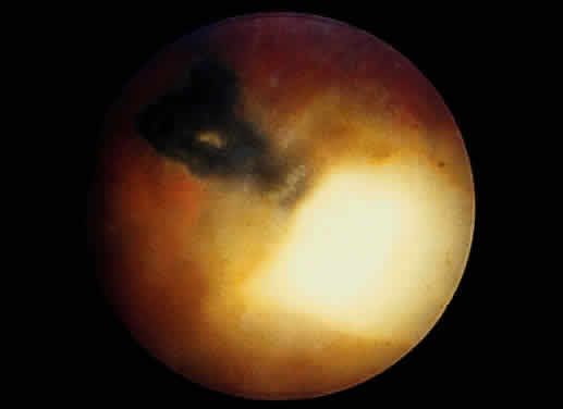 | Severe inflammatory changes within the globe secondary to toxoplasmosis