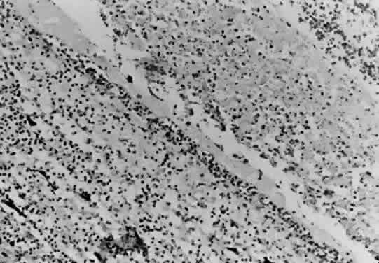by successive layers of mononuclear cell infiltration (Fig. 15). The cells consist predominantly of lymphocytes and macrophages with