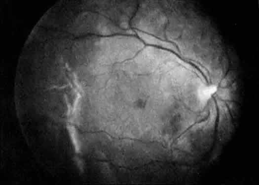 Fig. 2. A 32-year-old woman during her third trimester of pregnancy with a branch retinal artery occlusion. She was found to have protein S deficiency.