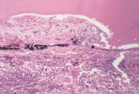 Biopsy of nasal lesions is recommended for accurate diagnosis. Histopathology demonstrates broad nonseptate hyphae with right angle branching associated with an acute inflammatory reaction. Inclusion of arterial vessels in biopsy specimens may be important in diagnosis. Treatment consists of aggressive debridement of involved orbital tissue, often requiring orbital exenteration which may be life saving. The drug of choice in treatment is intravenous amphotericin B. Common side effects of amphotericin include fever, nausea, vomiting and reversible nephrotoxicity. Patients may be premedicated with acetaminophen, Benadryl, and hydrocortisone to help diminish these reactions. Treatment with liposomally coated amphotericin B also decreases side effects. Local packing of nasal mucosa with amphotericin B has been studied,135 with reported success. Fungistatic effect has also been reported with the use of hyperbaric oxygen136 and should be considered in initial management of all patients, especially those at high risk for poor outcome. |