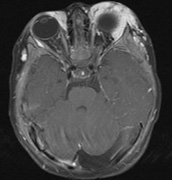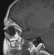 Growth of a plexiform neuroma may be directed posteriorly, infiltrating orbital tissues and involving the bony walls. Congenital plexiform neuromas of the orbit are often associated with absence of the sphenoid wing (Fig. 5). Intracranial pulsation can be transmitted to the orbit causing pulsatile proptosis or enophthalmos.57–59 Plexiform neuromas of the lid and orbit are difficult to treat; complete excision is difficult and potentially disfiguring. The tumors are vascular and may bleed copiously at surgery. They are not radiosensitive and there is also risk of inducing malignant transformation. Trials with antiangiogenic chemotherapeutic agents (thalidomide, interferon alpha) and mitotic-signaling pathway blockers (inhibition of Ras by Farnesyl protein tranferase inhibitor) are in progress.60,61 OPTIC NERVE GLIOMAS Optic pathway gliomas arise from the astrocytes of the optic nerve. Most are pilocytic astrocytomas and typically remain intradural, extending in the subdural space. Malignant transformation is rare. There appear to be two growth patterns62: