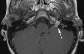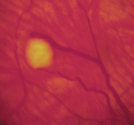 On occasion, an exophytic-type capillary hemangioma adjacent to the optic nerve can masquerade as chronic disc edema.194 The frequency of optic-disc angiomas was 15% in a group of 175 patients.186 Optic-disc hemangiomas may be the only manifestation of disease in VHL syndrome.186 In the absence of effective treatment, exudation from capillary hemangiomas may induce retinal detachment and macular star formation.170,186 Early detection (i.e., when the hemangioma is small) and treatment are associated with better visual outcomes.186 The exception may be small juxtapapillary hemangiomas, in which treatment may produce significant loss of acuity. Small juxtapapillary hemangiomas may remain stable.185 Both direct and feeder vessel photocoagulation with a yellow-dye laser have been shown to be effective for treating small (<1.5mm) capillary hemangiomas. Feeder vessel technique may require a greater number of treatment sessions.195 Direct treatment may be associated with a smaller scotoma than feeder vessel treatment, but direct photocoagulation carries a potential for hemorrhage and retinal detachment.186 Hemoglobin absorbs yellow laser more than green or blue wavelengths. Complete obliteration of the hemangioma may not be necessary to achieve resolution of symptoms.170 When the retinal capillary hemangioma is located in the far anterior periphery, or when it is larger than 3.0 mm in diameter, cryotherapy may be more effective than photocoagulation.170 To treat hemangiomas 4 to 5 mm in diameter, plaque radiotherapy has been recommended.196 The VHL gene product appears to inhibit the production of VEGF (vascular endothelial growth factor). Treatment with SU 5416, a VEGF-receptor inhibitor, has been reported to restore and maintain visual acuity and visual field in a patient with an optic-disc hemangioma.197 Retinal “twin vessels”—a paired retinal arteriole and venule of normal caliber, separated by less than the diameter of the venule—have been described as part of VHL198 but the finding has not been reproduced.186 Twin vessels are not associated with retinal capillary hemangiomas, and may be found in normal patients.199 Differential Diagnosis In the presence of subretinal exudates, the peripheral hemangioma may be overlooked, giving a false impression of Coats disease (diffuse unilateral retinal telangiectasias with exudation in young boys). Dilated feeder vessels may be confused for the arteriovenous malformation of Wyburn Mason disease (racemose hemangioma). Exudation is not a feature of Wyburn Mason disease and there is no angioma. Retinal cavernous hemangiomas lack prominent feeder vessels and do not leak fluid into the subretinal space. Retinal macroaneurysms may leak fluid but do not have dilated feeder vessels. Uveal melanomas usually have only a dilated vein.170 DIAGNOSTIC CRITERIA: If there is a positive family history of VHL syndrome, transmission is likely based on finding any one of the following13: