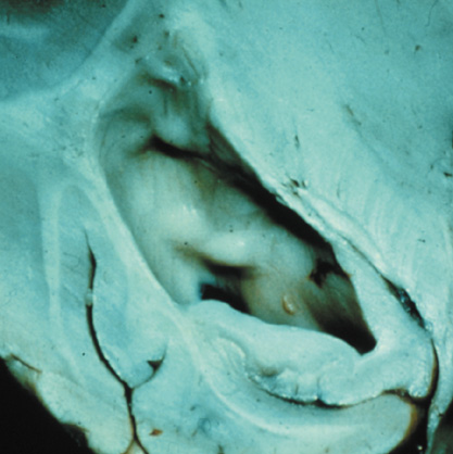 The majority of patients are female, and affected children may have only one extracutaneous manifestation. The facial vascular lesion is typically large, segmental, and plaque-like.238,239 Unlike the vascular malformation of Sturge-Weber Syndrome, the PHACES facial vascular lesion is likely a true hemangioma.240 Visceral and/or CNS hamangiomas may affect up to 50% of patients.241 The most common associated ocular abnormalities appear to be microphthalmos and increased vascularity on examination of the fundus. Glaucoma does not appear to be a common association of the syndrome (Fig. 24).242 |