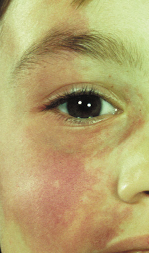 Port-wine stains (PWS) affect 0.3% of live births. The majority of isolated PWS occur in the head and neck.206–208 The possibility of Sturge- Weber syndrome (SWS) is raised when a newborn is noted to have a facial PWS. SWS does not have any clear inheritance pattern. The minimum diagnostic criteria for SWS is a subject of debate.209–211 The complete syndrome includes: