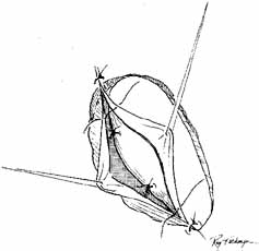 Fig. 14 Repair of canalicular laceration over a Silastic stent. Two to three sutures may be placed submucosally to close the mucosal tear.