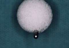 Fig. 12. A polyethylene sphere with a piece of sclera attached to its surface using nonabsorbable suture.
