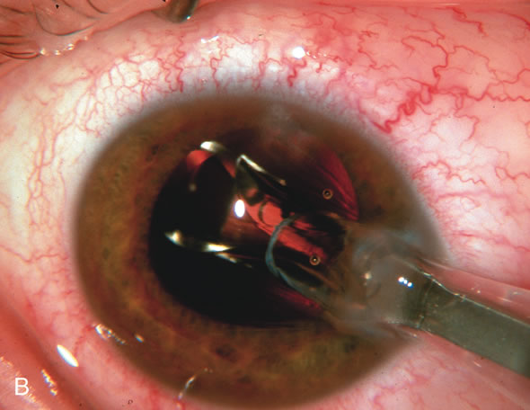 The atonic pupil that follows a severe angle-closure attack is fixed and dilated. This pupil alteration may cause the surgeon to choose an IOL with a larger optic to prevent glare and monocular diplopia associated with the larger pupil. Patients should be instructed that visual aberrations associated with abnormal pupils from glaucomatous disease might alter visual performance post cataract surgery. Eyes with short axial lengths typically have a very shallow anterior chamber. This makes it even more difficult for the surgeon to work, especially when introducing any instrument into the eye. In addition, eyes with unusual axial lengths require more sophisticated IOL calculation formulas; otherwise, undesirable postoperative hyperopia occurs.