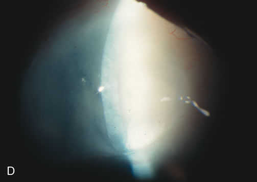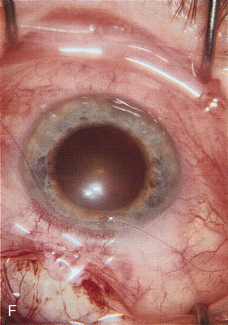 Recognition of these alterations facilitates treatment of the disease process. A severe attack of angle-closure glaucoma causes corneal endothelial damage, cataract, trabecular damage, posterior synechiae, and iris necrosis. These tissue alterations will alter the surgeon's approach to cataract surgery. Corneal decompensation after otherwise uncomplicated cataract extraction is common in patients having sustained a severe attack of acute angle-closure glaucoma.37 Surgeons contemplating cataract extraction in these eyes naturally desire to avoid as much corneal trauma as possible. Glaucoma patients with concomitant corneal disease such as iridocorneal endothelial syndrome (ICE) should be informed of likely corneal decompensation associated with glaucoma or cataract surgery.