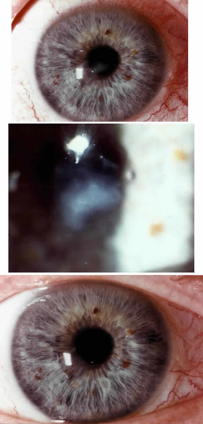 out broadly over the entire corneal surface unless the entire cornea