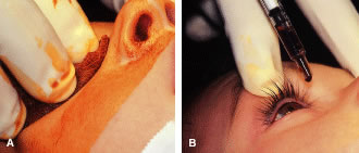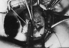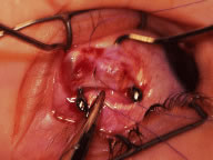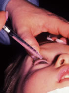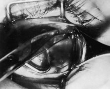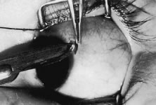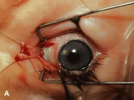 | In the early postoperative period, patients are given antiemetic suppositories and a clear liquid diet to control nausea. If pain is experienced, acetaminophen is given. Warm compresses with a clean washcloth soaked with warm tap water are applied to the closed eye several times a day for 3 to 4 days after the operation, or until the bloody secretions have subsided. We do not routinely use antibiotic drops or occlusive dressings. The patient or family may be contacted by the surgeon's office and/or the surgical facility to ensure recovery from the procedure is proceeding as expected. The patient is re-examined 3 to 7 days after the operation and again at 4 to 6 weeks. If there is suspicion of a complication or an unexpected result, more frequent follow-up visits are indicated. |