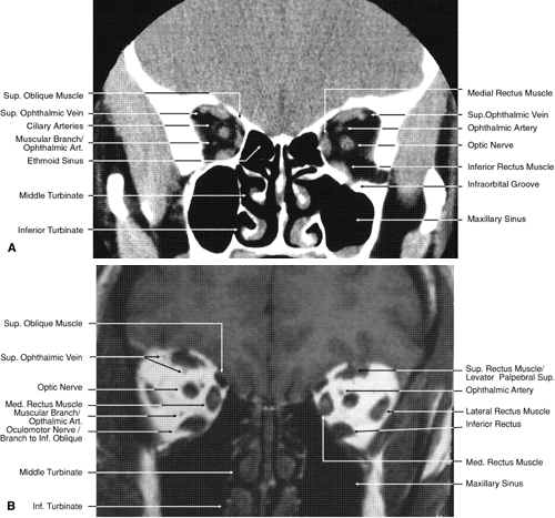images.1,43–47 The globe is shown in Figure 12. The orbit and periorbital structures are shown in Figures 13 through 16, and the optic canal is shown in Figures 17 through 26. The cavernous sinus and optic chiasm are shown in Figures 27 and 28, and the posterior visual pathway and cranial nerves are shown in Figures 29 through 33.