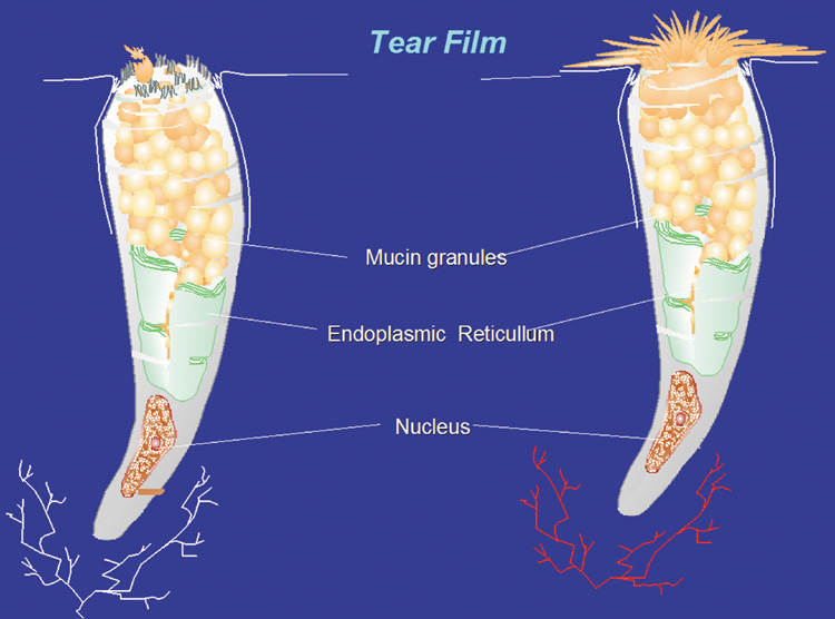 the conjunctival surface are numerous mucin-secreting goblet cells and