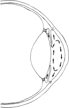 Continuous formation and drainage of the aqueous is essential to the good health of the eye. In the absence of aqueous circulation, the cornea is thickened, the anterior chamber is absent, the iris is partly atrophic, and the lens is cataractous.3