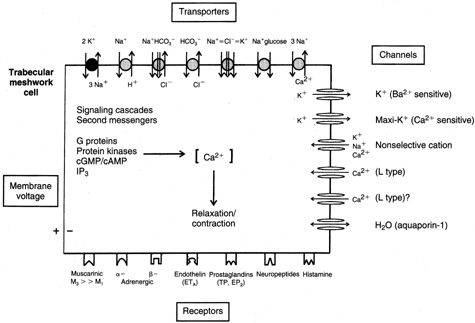 709. Polansky JR, Alvarado JA: Cellular mechanisms influencing the aqeuous humor outflow pathway. In Albert DM, Jakobiec FA, eds.: Principles and Practice of Ophthalmology: Basic Sciences. Philadelphia: WB Saunders, 1994:26